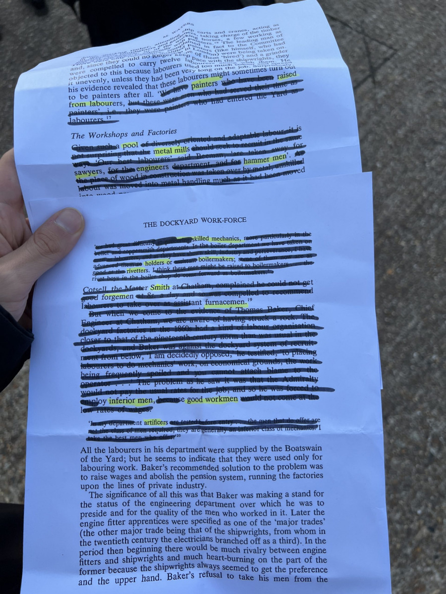 Chatham Dockyard Chorus was created on 28 October 2022 as part of the Sonic Cartography conference at University of Kent. I led a collaborative song-making workshop about the social history of Chatham Historic Dockyard, sharing the creative approaches for text, sound and music composition in response to archival material related to the dockyard.